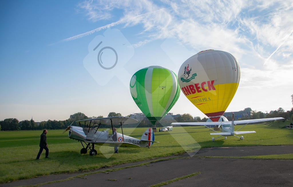 Der historische Doppeldecker D-ELCR trifft am Flugplatz Hamm-Lippewiesen auf zwei Heißluftballons des Luftsportclubs Hamm. Insgesamt drei Heißluftballons gehören zur Flotte der Ballonsportgruppe, die bei guter Sicht regelmäßig am Himmel zu sehen sind. Wollt ihr selbst einmal mitfahren? Alle Infos bekommt ihr beim LSC Hamm unter: