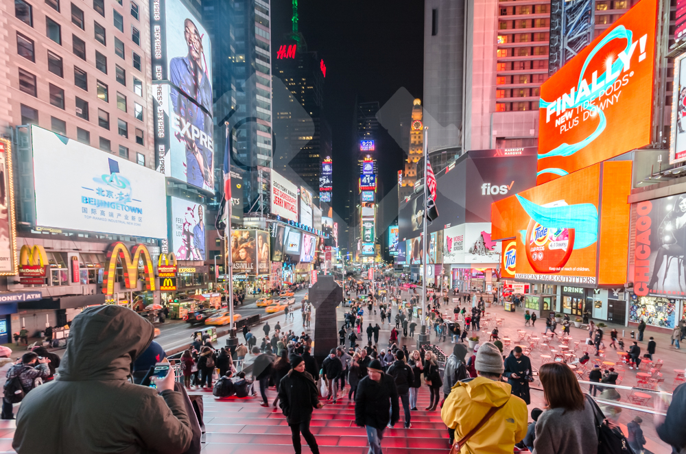 Times Square: definitiv ein Pflichtbesuch. Hier tobt das Leben, hier treffen alle möglichen Menschen aufeinander, hier sprudelt das Leben. Die hellen Leuchtreklamen am Times Square kann man selbst noch viele Blocks weiter erkennen.