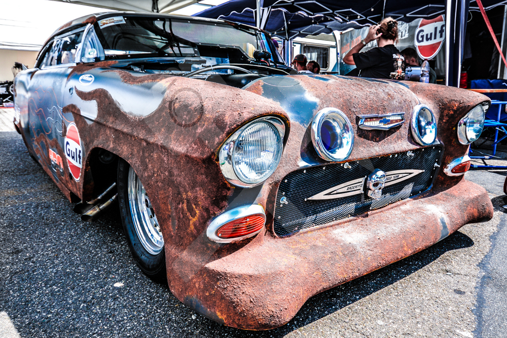 Aber mehr noch – der Start eines solchen Dragster ist im wahrsten Sinn eine Ganzkörpererfahrung. Der ohrenbetäubende Lärm der rd. 1000 PS pro Zylinder lässt jeden noch so hart gesottenen Fotografen die Kamera vor Schreck verreißen. Erst nach einigen Starts hat man sich – trotz bestem Gehörschutz – darauf eingestellt. In gewisser Weise etwas abgestumpft kann man dann auch das „Aufzwirbeln“ der an der Felge festgeschraubten Reifen einfangen – extrem kurze Belichtungszeiten vorausgesetzt.
